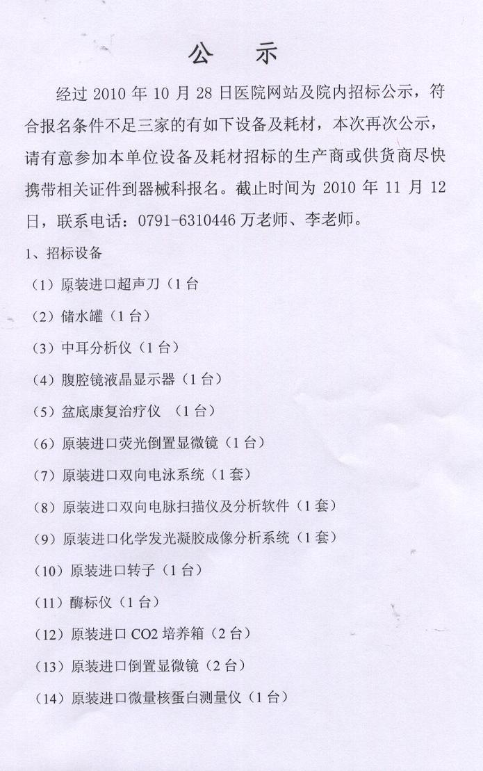 江西省妇幼保健院关于原装进口超声刀等设备及耗材招标公告